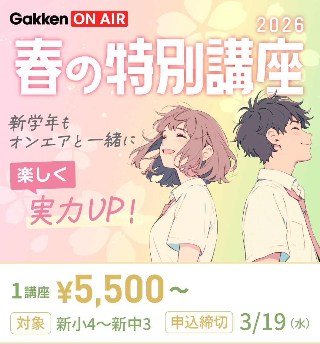 学研オンエアの特別講座で、“学習の仕方”や“学習の定着度”を確認して、勉強も趣味も遊びも楽しめる最高の新年度のスタートを切りましょう!