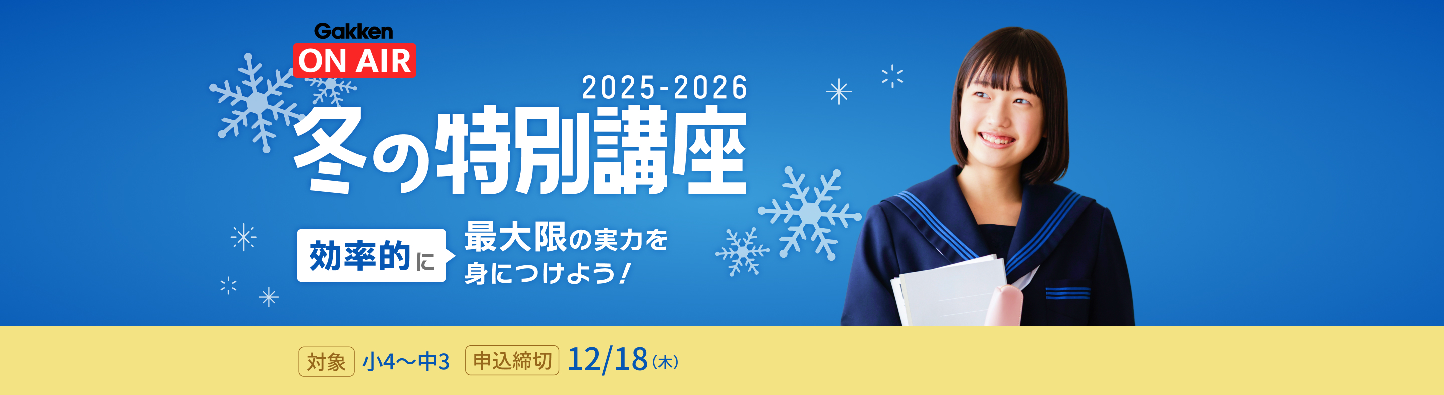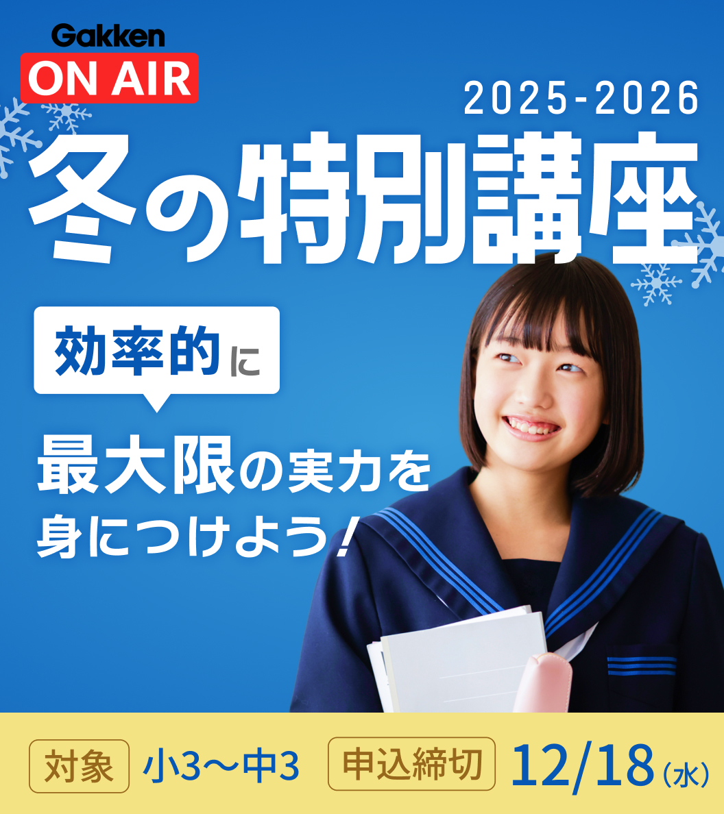 学研オンエアでは授業と教材だけではなく「勉強の仕方」「勉強に向かうモチベーション」を大切にしています。特別講座ではこの冬学習すべき単元と正しい学習法を指導します。
